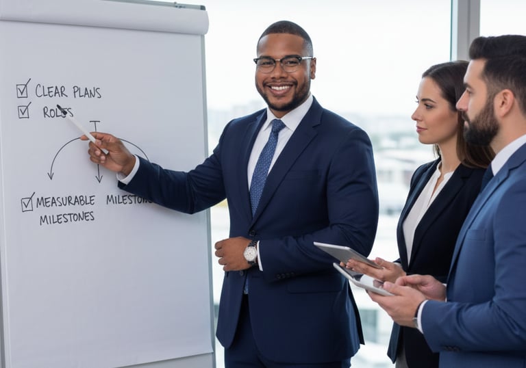 Our efforts focus on clear plans, established roles, and quantifiable milestones; facilitating implementation, rather than solely offering suggestions.